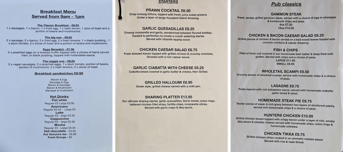Meals at Uncle Tom's typically range from £10 to £20. It’s a solid value for the quality and quantity of food, especially during lunch and dinner.