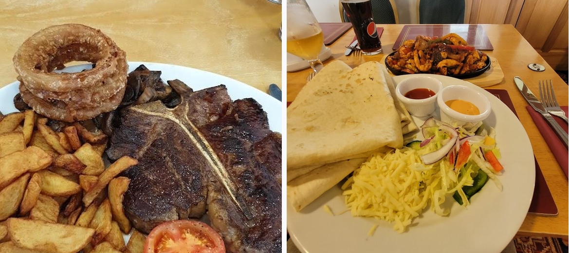 Don’t miss the Prawn Cocktail and Garlic Quesadillas as starters. For a hearty meal, the BBQ Stack burger and The Big One breakfast are top picks. Save room for dessert; their sweet offerings impress.